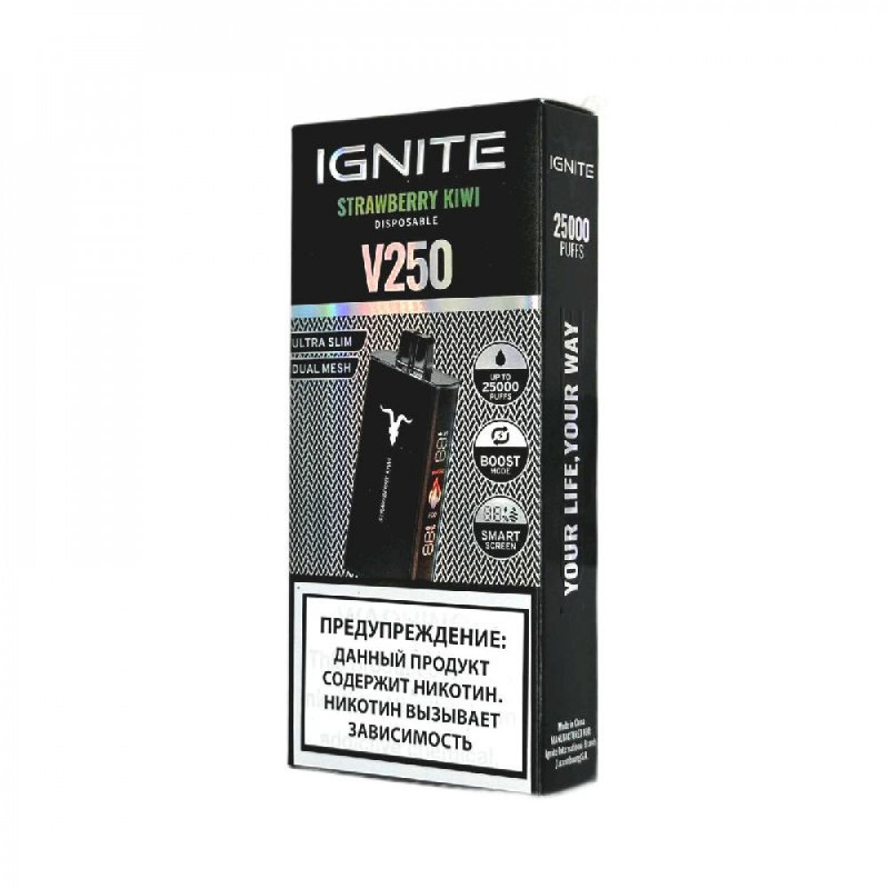 Электронная сигарета Ignite V250 Black 25000 - Strawberry Kiwi (Клубника киви) - купить в Струнино