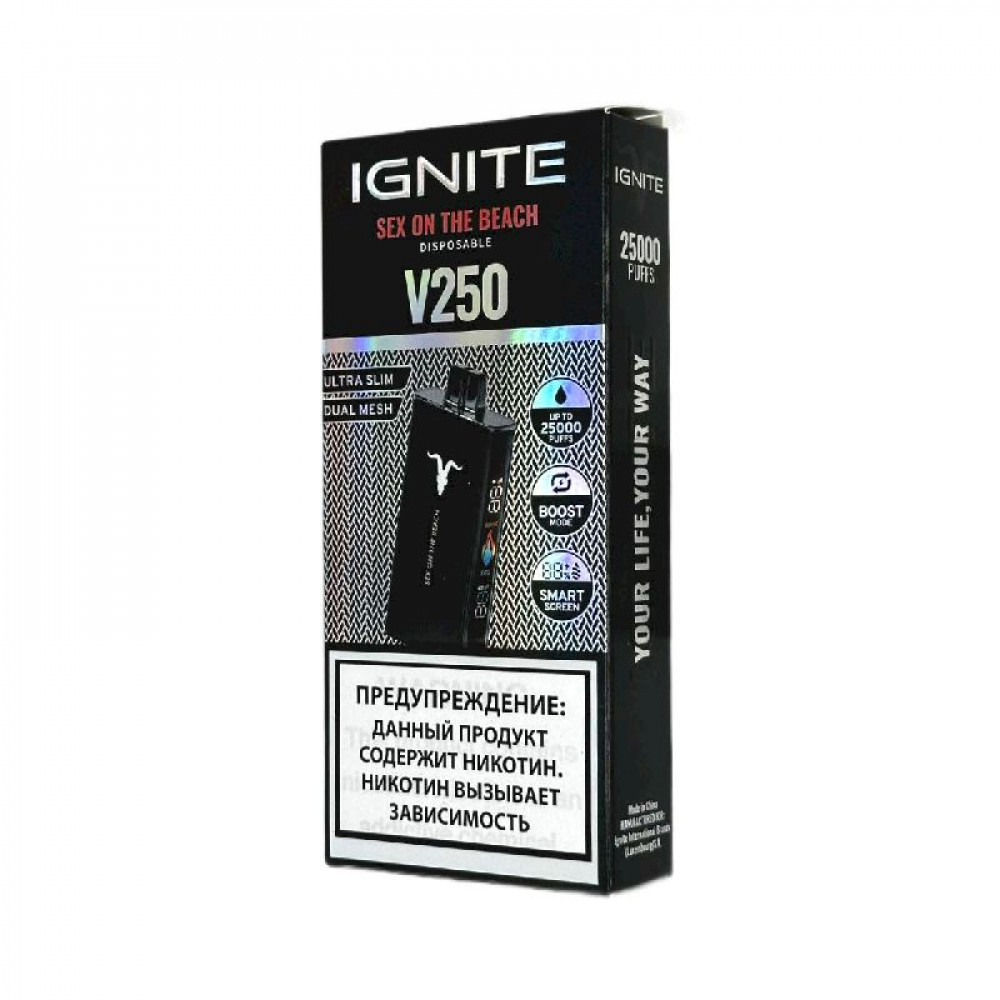 Электронная сигарета Ignite V250 Black 25000 затяжек - Sex on the Beach (Секс на пляже) - купить в Струнино