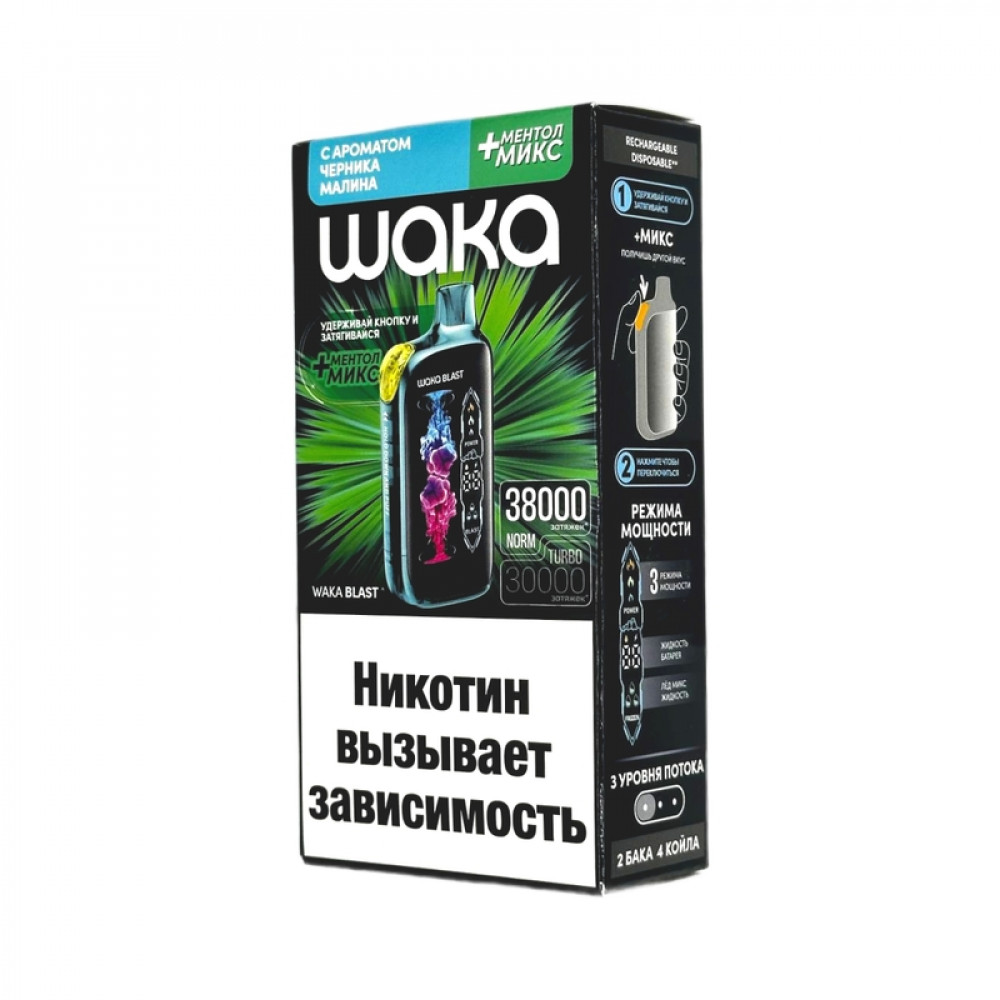 WAKA BLAST 38000 Hard - Черника малина + ментол микс - купить в Струнино